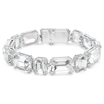 Ощутите силу простоты с этим эффектным браслетом Millenia. Дизайн с родиевым покрытием украшен прозрачными восьмиугольными кристаллами, расположенными попеременно горизонтально и вертикально. Благодар...