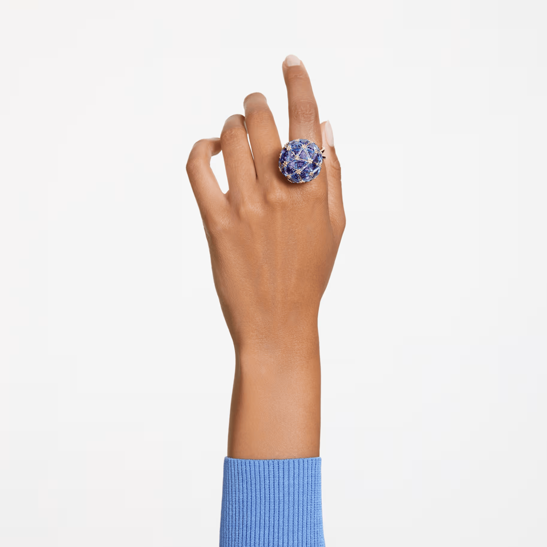 Это завораживающее коктейльное кольцо от семейства Curiosa — шедевр воображения и мастерства. На двойной позолоченной оправе расположены синие треугольные камни с бихроматической технологией, создающие калейдоскопические цветовые перспективы под любым углом. Носите это эффектное кольцо отдельно или в сочетании с другими украшениями, переливающимися на свету.