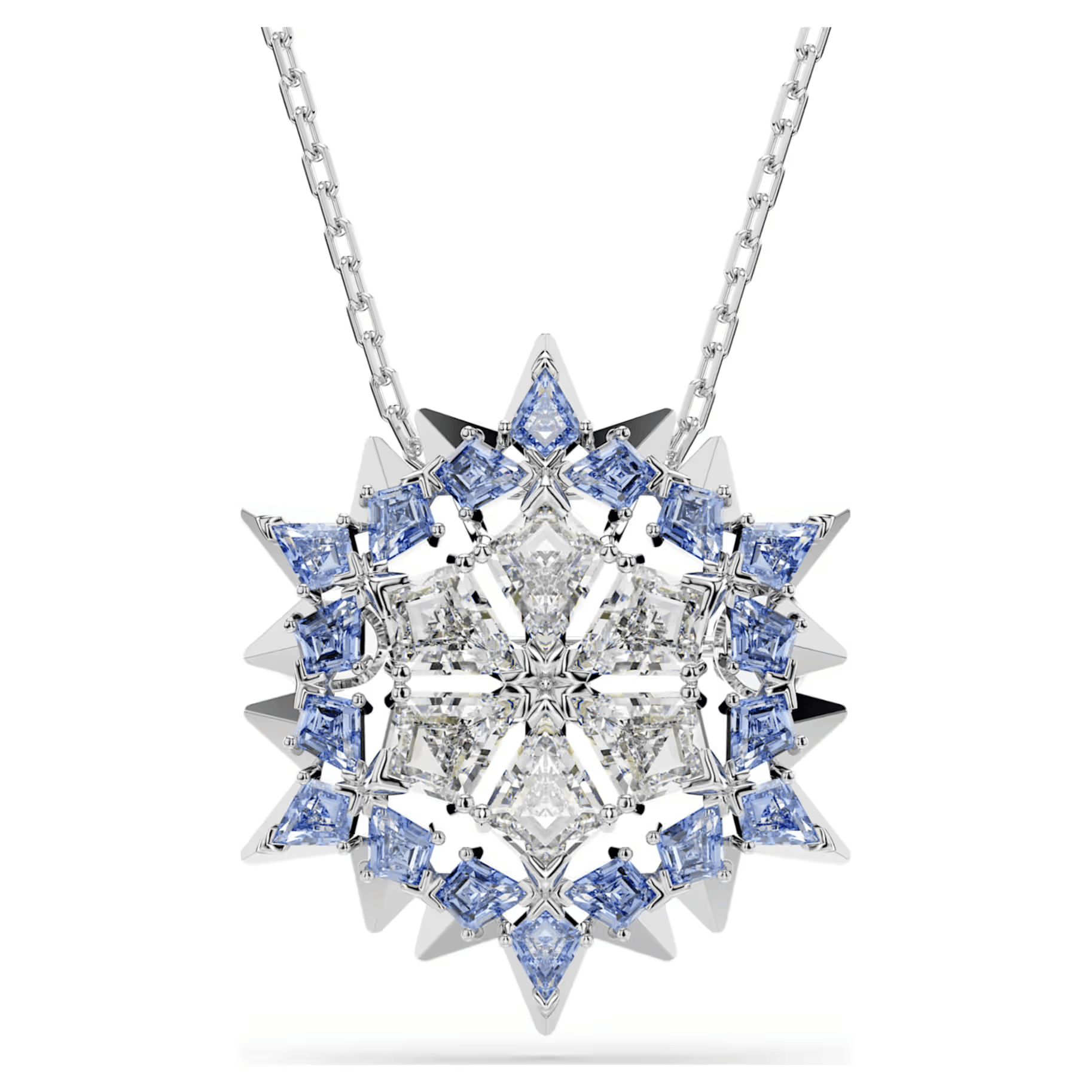 Окунитесь в очарование этого универсального кулона в виде снежинки, который можно снять с тонкой цепочки и носить как брошь. Дизайн с родиевым покрытием дополнен вневременным сиянием серо-голубых кристаллов Swarovski, которые легко подойдут как для дневных, так и для вечерних торжеств. Сочетайте его с другими украшениями Magic, чтобы подчеркнуть свой гламурный образ.